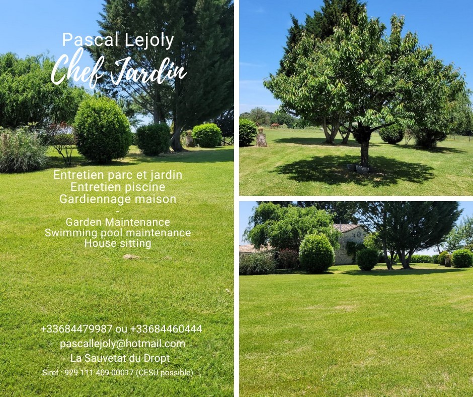Let me introduce myself, Pascal Lejoly, resident of La Sauvetat-du-Dropt, self-employed entrepreneur who offers you his services such as garden maintenance, house exterior maintenance and swimming pool maintenance. Guarding your house is also possible.