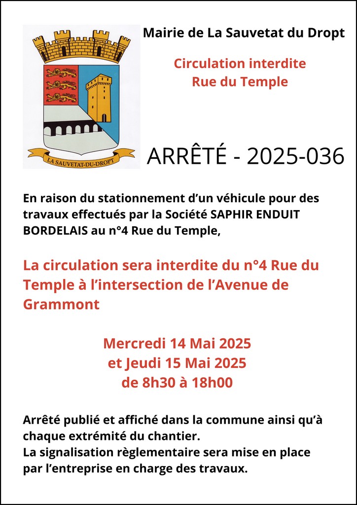 En raison des mercredi 8 et jeudi 9 fériés, veuillez noter, svp, que pour la semaine 19, le secrétariat de Mairie sera uniquement ouvert lundi 6 mai de 13h30 à 17h30. Merci.
