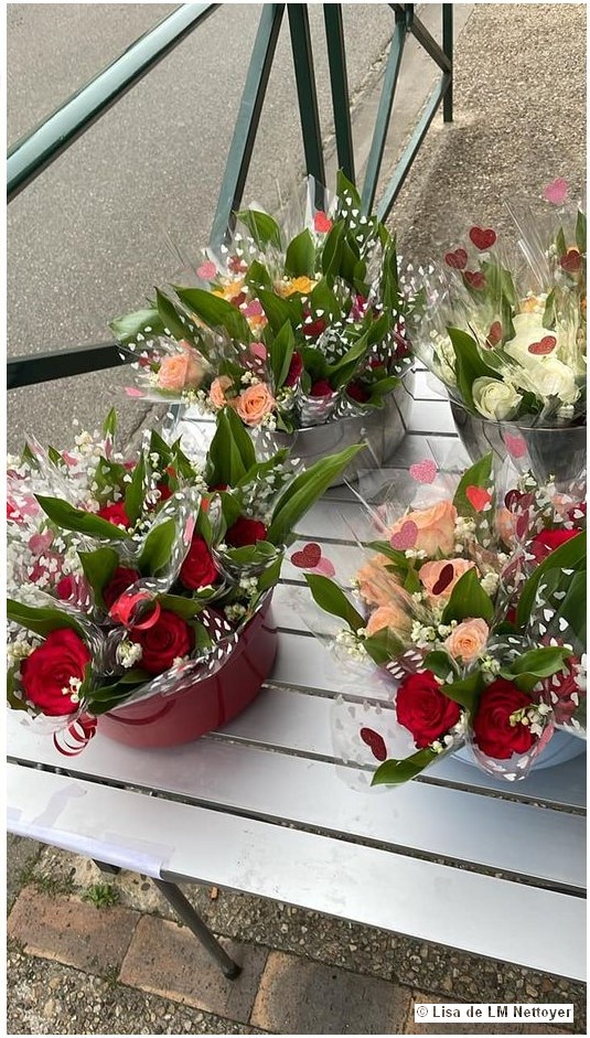 Photo des bouquets de muguets et de roses de Lisa, vendus le 1er Mai au Bar-Restaurant Les Fées Gourmandises.