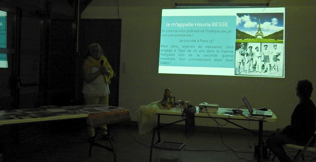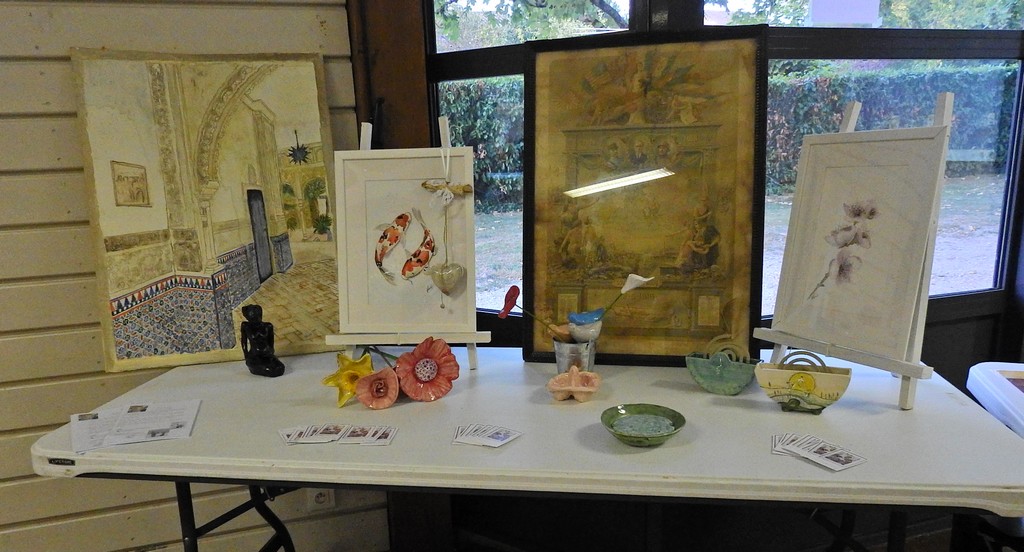 Ensuite, Houria prenait la parole. Née à Paris dans le 13°, comme son nom ne l’indique pas, Houria, de père algérien et de mère belge, maman de 4 beaux garçons a décidé de se rapprocher de ses petits enfants bordelais. Jeune retraitée de l’enseignement, Houria qui aimait transmettre a finalement fui un métier qui ne ressemblait plus à celui qu’elle aimait tant. Installée à La Sauvetat depuis 2 ans, elle se consacre à sa passion pour la création et ouvrira les portes de son atelier d’art le dimanche 2 octobre. Peinture, modelage et céramique seront exposés. Il vous sera possible de vous exercer à une technique ou d’assister à une démonstration artistique.
