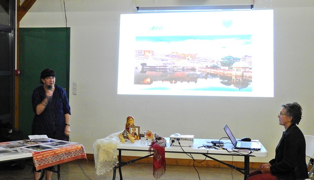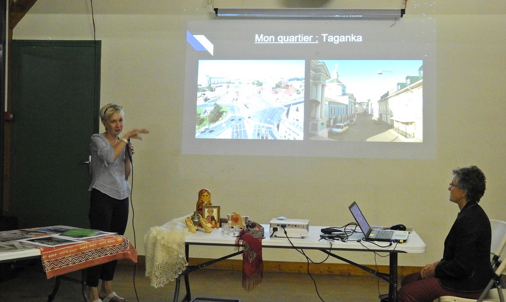 La soirée se poursuivait en accueillant Katia la Russe. Née à Moscou, fille et petite-fille de diplomate ayant décroché un diplôme d’architecte à Moscou puis ayant fait des études linguistiques à Genève où elle avait suivi ses parents, Katia, passionnée d’histoire d’art et d’architecture présentait les monuments de sa ville natale et les lieux qu’elle fréquentait en expliquant que malgré le rideau de fer, elle avait accès à un cinéma qui diffusait les films du monde entier où elle découvrait petite les Walt Disney puis plus tard, les œuvres de Fellini ou les westerns ! C’est à Genève qu’elle rencontrait son mari français et qu’après de nombreuses années de voyage à bord d’un voilier, le couple posait ses valises à La Sauvetat grâce à la découverte de la région par un ami lot-et-garonnais.