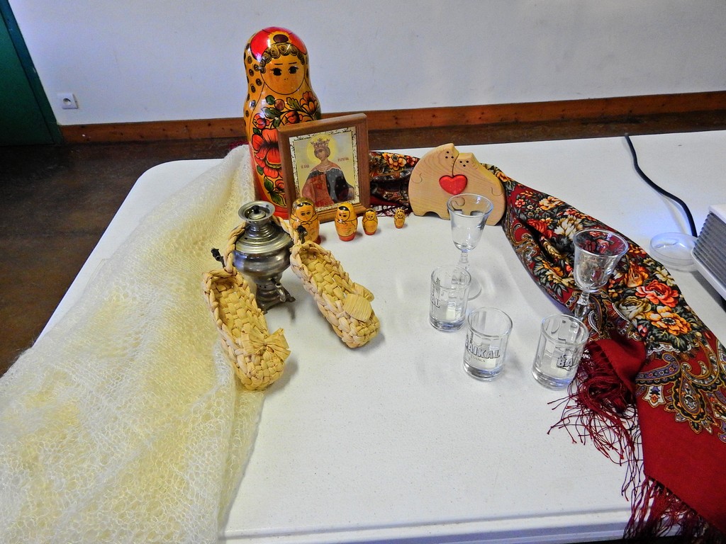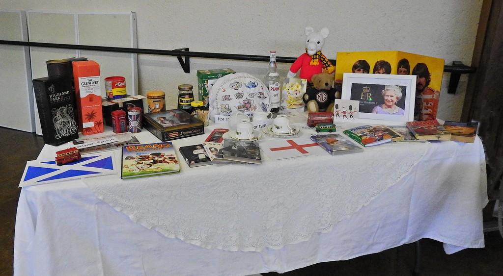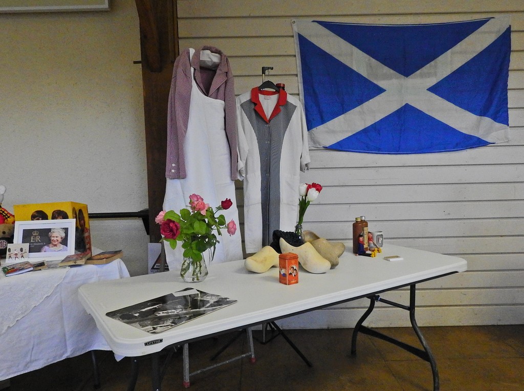 Après avoir écouté ces morceaux de vies, les spectateurs se dirigeaient vers une table garnie de douceurs faîtes par les Gavaches suivant les traditions du pays qu’ils représentaient. Une belle découverte de saveurs très appréciée tandis que d’autres allaient observer les objets installés sur les tables où le fin service à thé en porcelaine britannique côtoyait le samovar russe, où les tabliers de boucher se dressaient derrière les sabots de Hollande et où trônait bien sûr la photo de la Reine Elizabeth d’Angleterre …