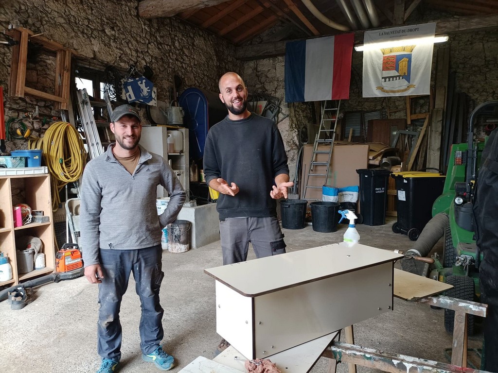 Dimitri, nouvel employé municipal de La Sauvetat du Dropt, vient d’être mis à l’épreuve par Monsieur le Maire Jean-Luc Gardeau qui lui a demandé de fabriquer une huche à pain pour la cantine de l’école. Sous l’œil amusé de son collègue Aurélien fort de ses 10 années d’emploi communal, Dimitri a fait le tour de l’atelier jusqu’à dénicher des plaques de mélaminé oubliées là depuis les derniers travaux de la salle des animations. C’est ainsi qu’il a pu créer cette huche aujourd’hui opérationnelle à l’entrée de la cantine.