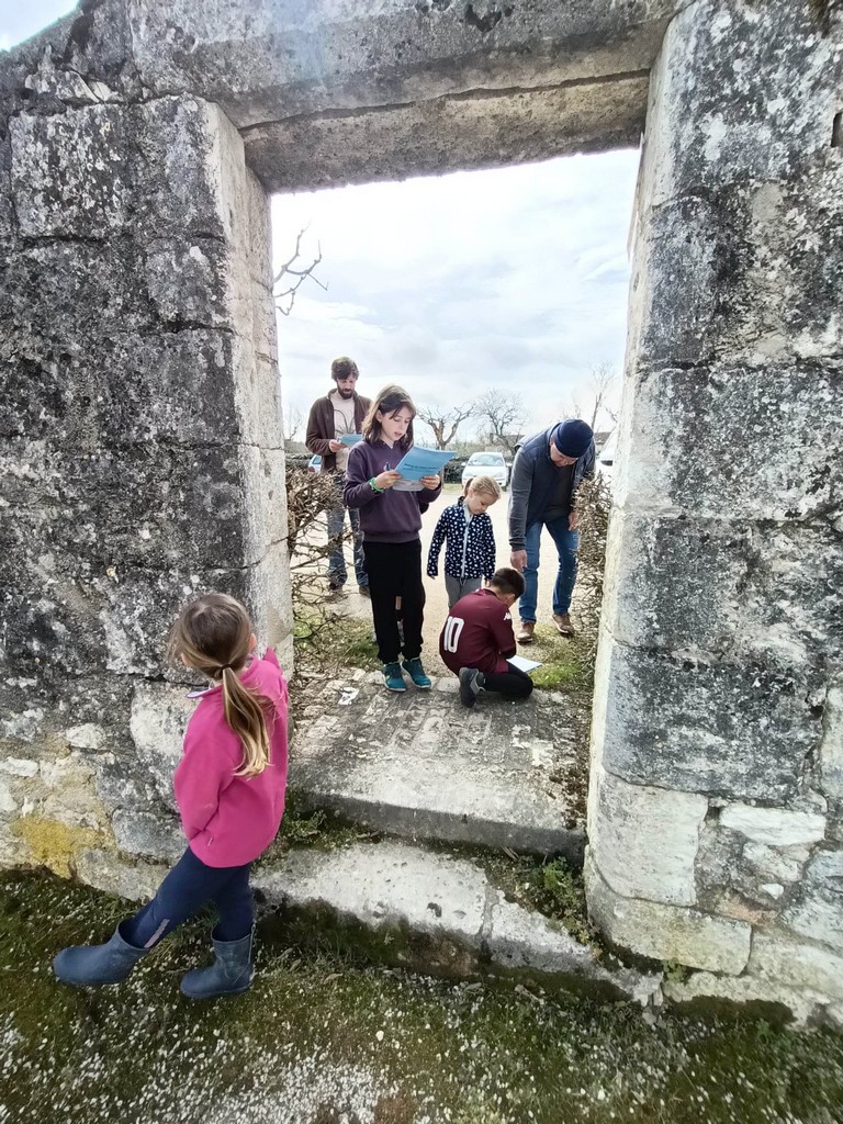 Plusieurs groupes se séparaient ensuite avec une feuille de route à énigmes les menant aux 4 coins du village. Parmi eux, Monsieur le Maire Jean-Luc Gardeau, son épouse et leurs deux petits-enfants.
