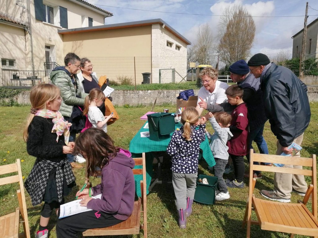 Les plus jeunes cogitèrent pour trouver les réponses aux questions et s’animèrent gaiment lors de la trouvaille des lettres disséminées ça et là. Le vent qui soufflait fort en ce samedi matin avait même emporté la lettre T, laissant un doute à l’arrivée quand il fallut remettre les lettres en place pour trouver que le meilleur allié du jardinier, c’était le ver de terre bien sûr.