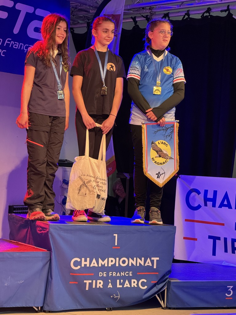 • Victoire, 10 ans, sur le podium du Championnat de France de tir à l’arc
