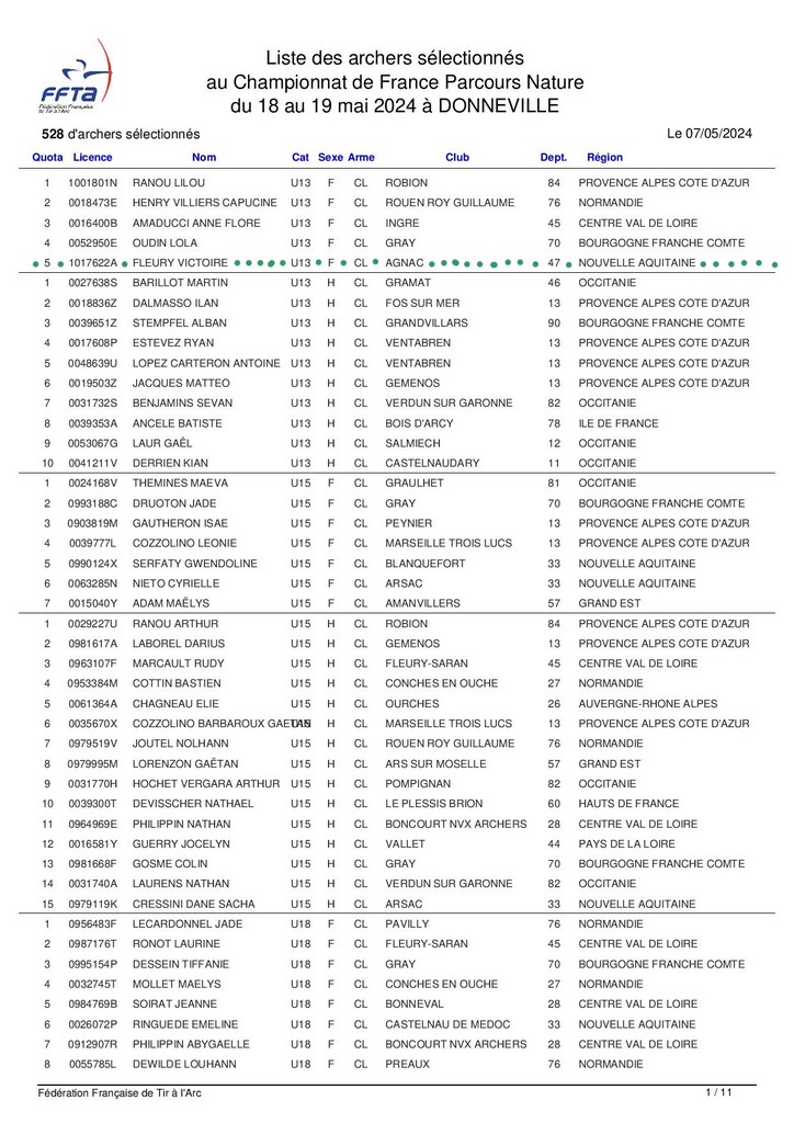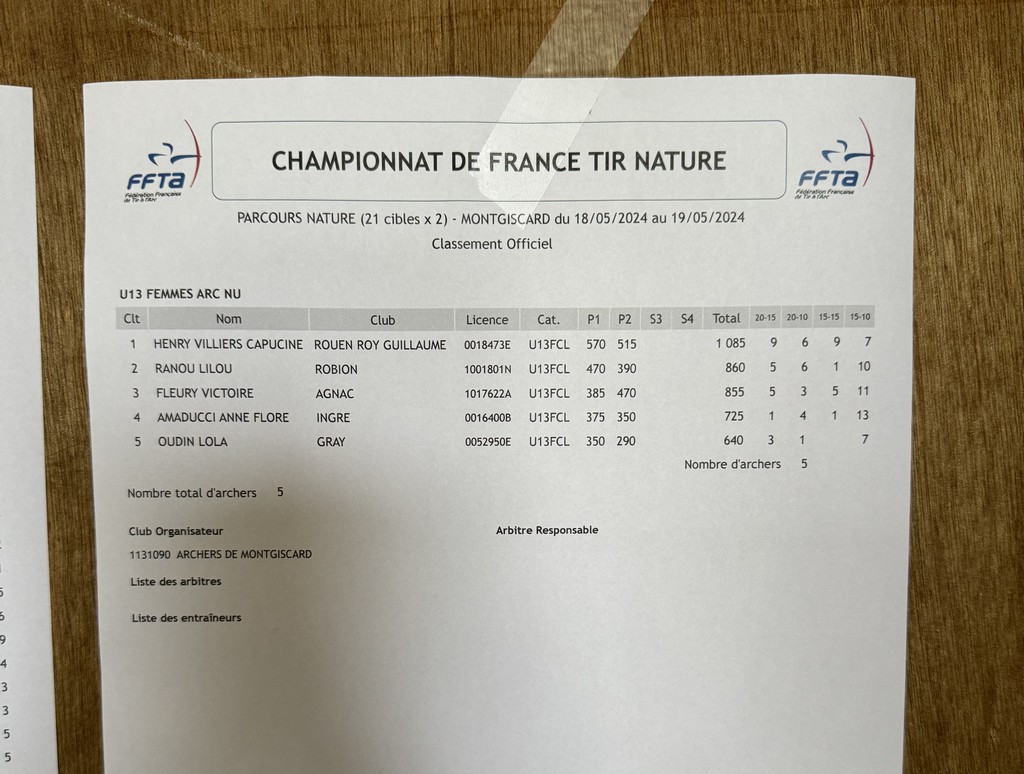 Ce week-end des 18 et 19 mai, Victoire était sélectionnée pour être l’une des 5 archères française pour participer au Championnat de France de tir à l’arc dans la catégorie parcours nature qui se déroulait à Donneville (31). Deux autres membres de l’association participaient: Jean-Luc Jossic (président) et Jean-Marc Jossic (vice-président).