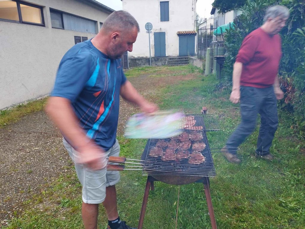 Le parcours revenait à La Sauvetat via Le Couloma avant de s’engager entre des carrés de vignes nous menant à St Germain en passant devant le puits Gavache qu’il serait intéressant de nettoyer pour en expliquer son origine. Puis, nous remontions vers le hameau de Serres, sur la commune de Soumensac où nous attendaient le président et Francine pour une collation devant la porte de Marie-Jeanne et Robert Arzile. Un rendez-vous incontournable pour ce couple de nonagénaire qui ne manque pas de visiter notre village à l’occasion des thés dansants ou des repas de saison. Après avoir fait les 3/4 du parcours, les merveilles de Francine accompagnées de melons et de pastèques rafraichissaient les vaillants marcheurs.