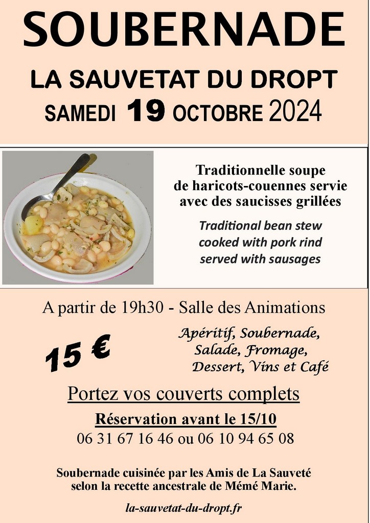 André Dubernard, président de l’association des Amis de la Sauveté, vous convie à l’Assemblée Générale qui aura lieu dans la Maison des Loisirs le samedi 25 janvier à 18h30.