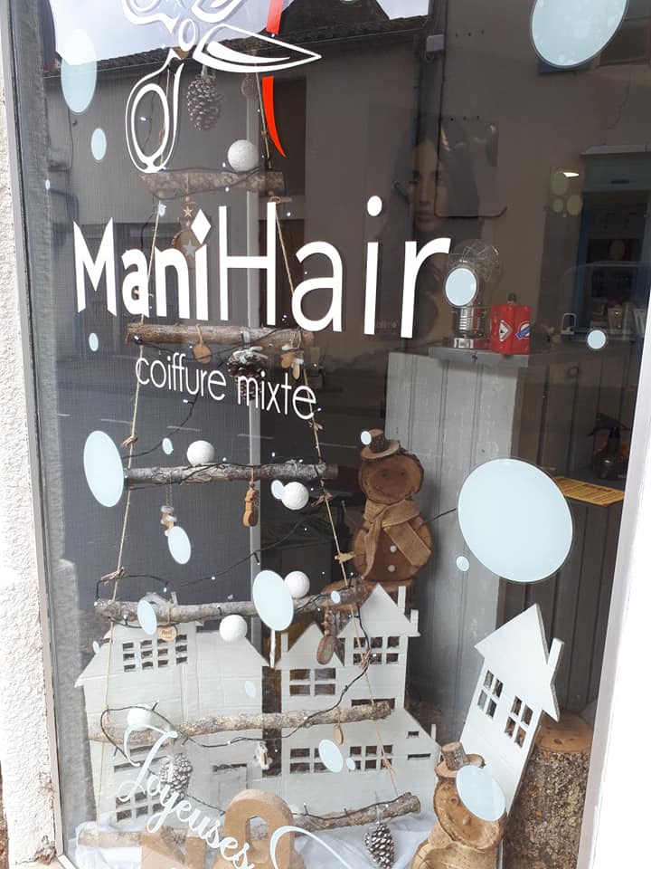 Et puis il a neigé aussi dans la vitrine de ManiHair…