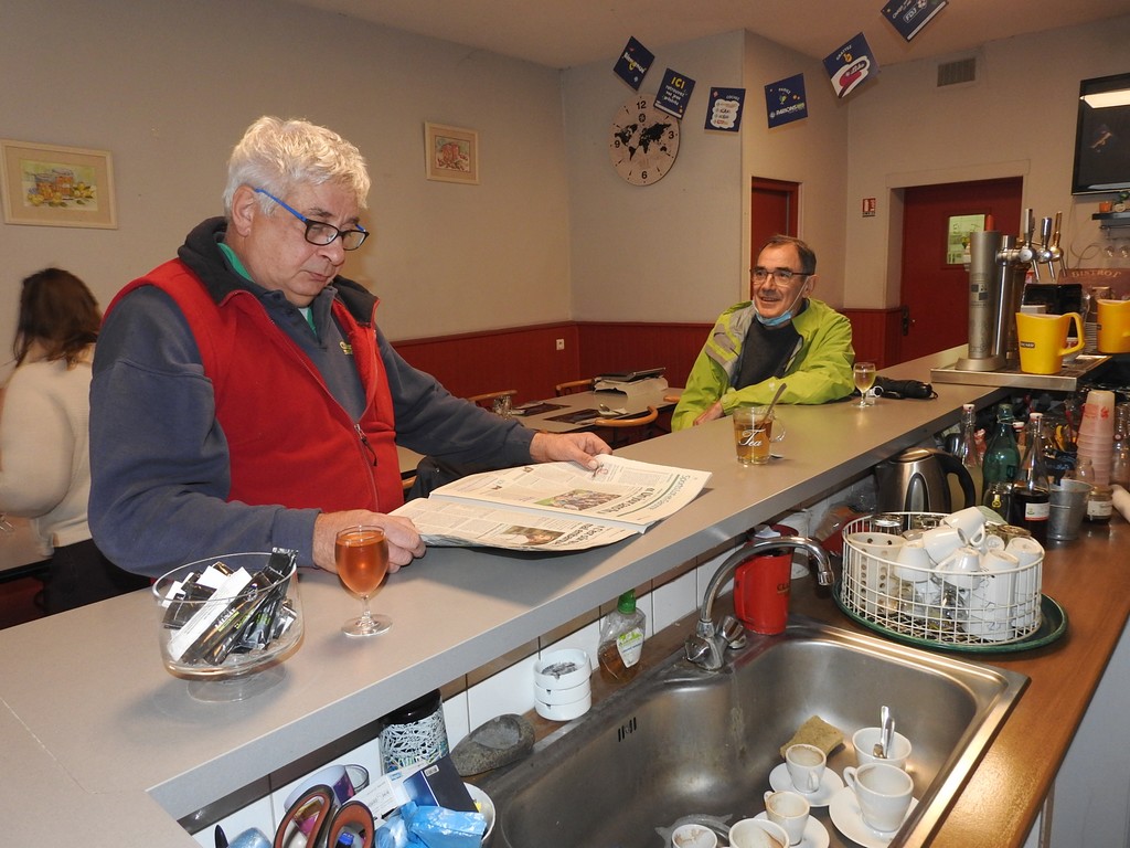Pour clore cette petite rencontre qui avait lieu avant le re-confinement, de gros nuages noirs amassés au dessus du clocher ont laissé la place à une forte averse obligeant nos deux comparses à se réfugier aux Fées Gourmandises ! Une belle façon de terminer la discussion en partageant le verre de la coopération.