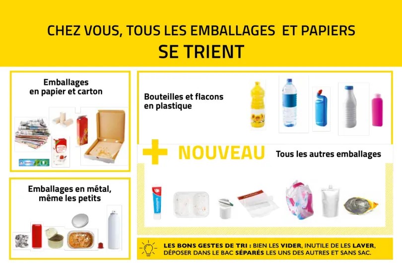 Plus simple, plus facile, à partir du 1er juillet, une seule question à se poser : C’est un emballage ? Si la réponse est oui, destination le bac jaune !