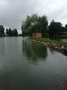 A proximité du lavoir surgit un bloc de pierre grise, une sculpture créée pour absorber son environnement, l’écoulement de l’eau, la lumière.