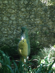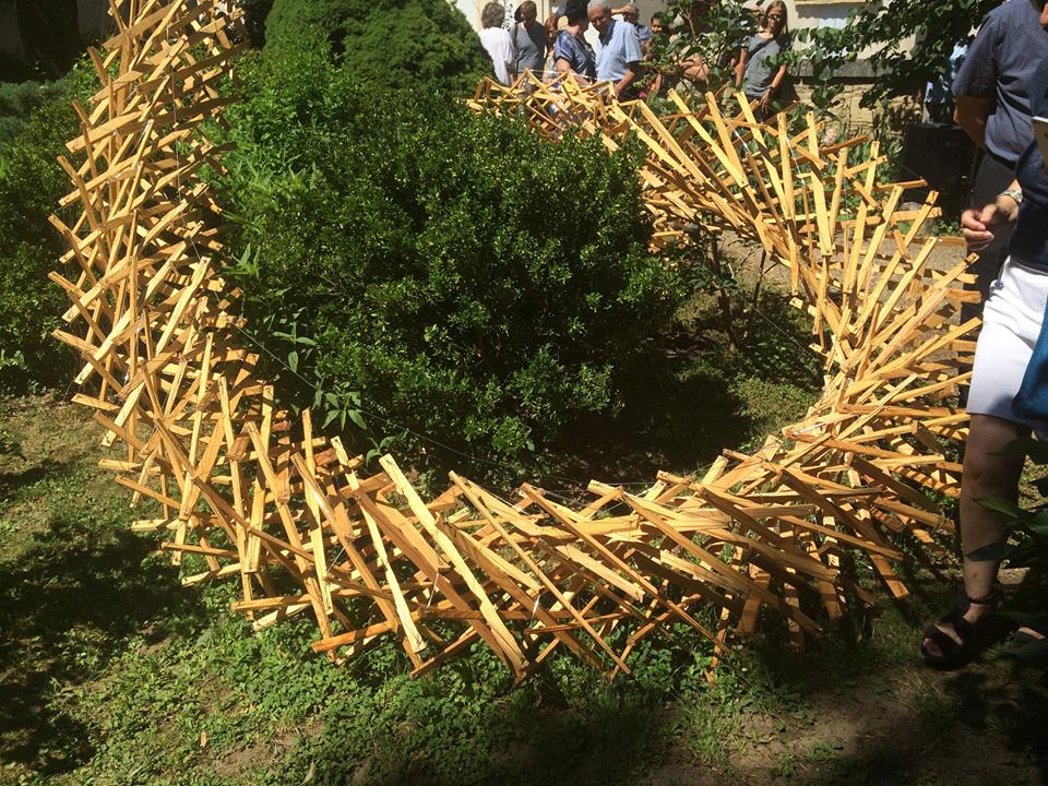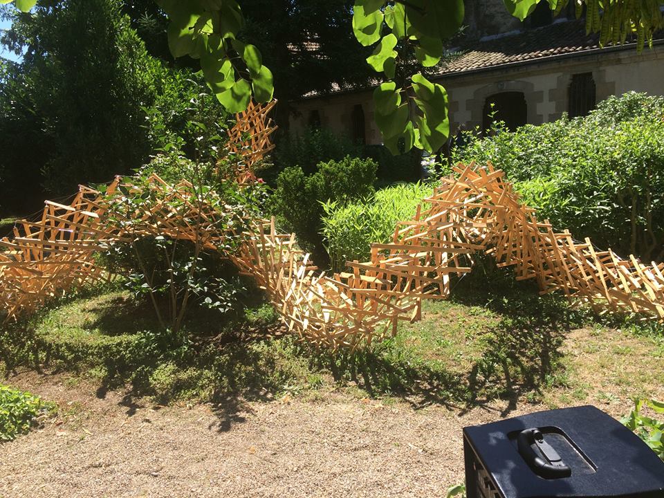 Son long corps sinueux de bois et de fils d’acier en tension surgit dans le jardin du presbytère.