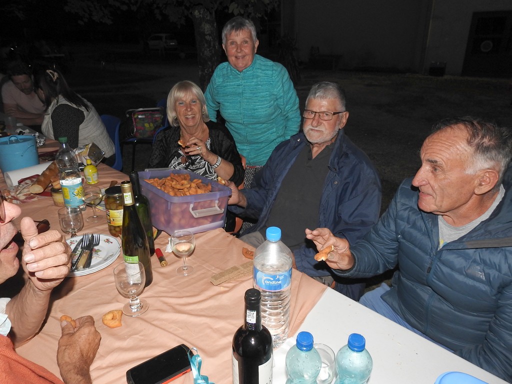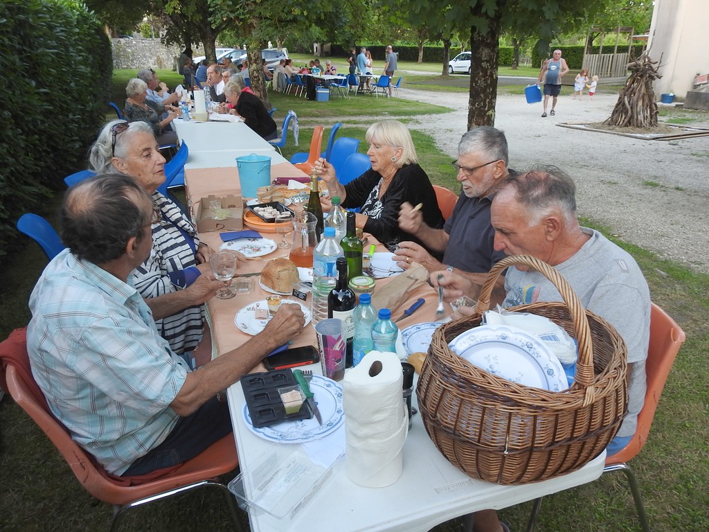 En raison de l’affluence lors des Soirées Gourmandes des vendredis, ce repas du samedi soir de la fête votive ne se faisait plus. Mais le nouveau bureau, enthousiaste et innovateur, décidait de le remettre au programme en y ajoutant le tirage d’un feu d’artifice. Une bonne initiative si l’on en juge par le succès de la soirée animée par le DJ et rappeur local en la personne d’Aurélien alias Jarh. Galvanisés par le final éclatant du beau feu d’artifice, plusieurs danseurs finissaient la soirée sur le dancefloor.