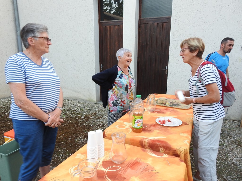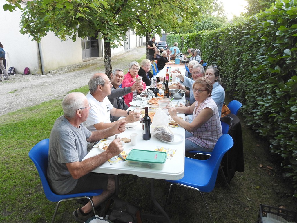 Les Amis de la Sauveté accueillaient quelques marcheurs pour une randonnée de 7km sur les chemins de campagne. Revenus à l’heure de l’apéritif, c’est à l’ombre bienfaisante de La Prairie des Croquants que le Comité des Fête les attendait pour un apéritif rafraichissant.