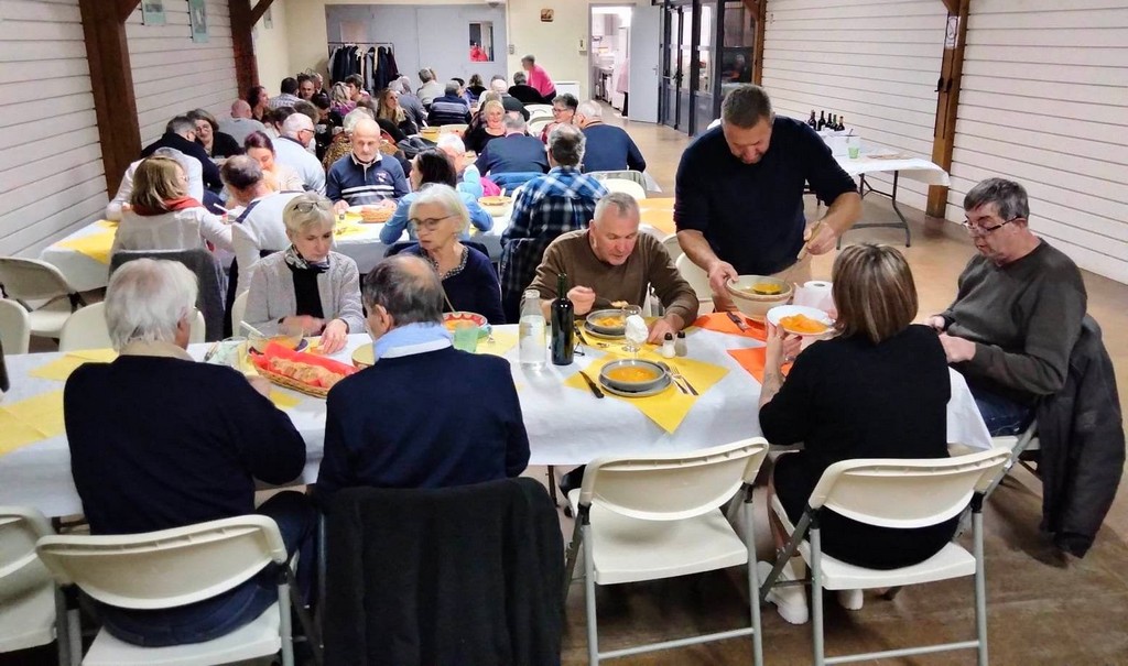 Les convives étaient accueillis par le président Jacques Foglia. Si ce Dauphinois adopté dans le village depuis une dizaine d’années n’a pas eu son mot à dire quant à la confection de la soupe, il était bien présent dans l’après-midi pour obéir aux ordres de ces dames en pelant, épépinant et coupant les nombreuses citrouilles amassées en vue du festin.