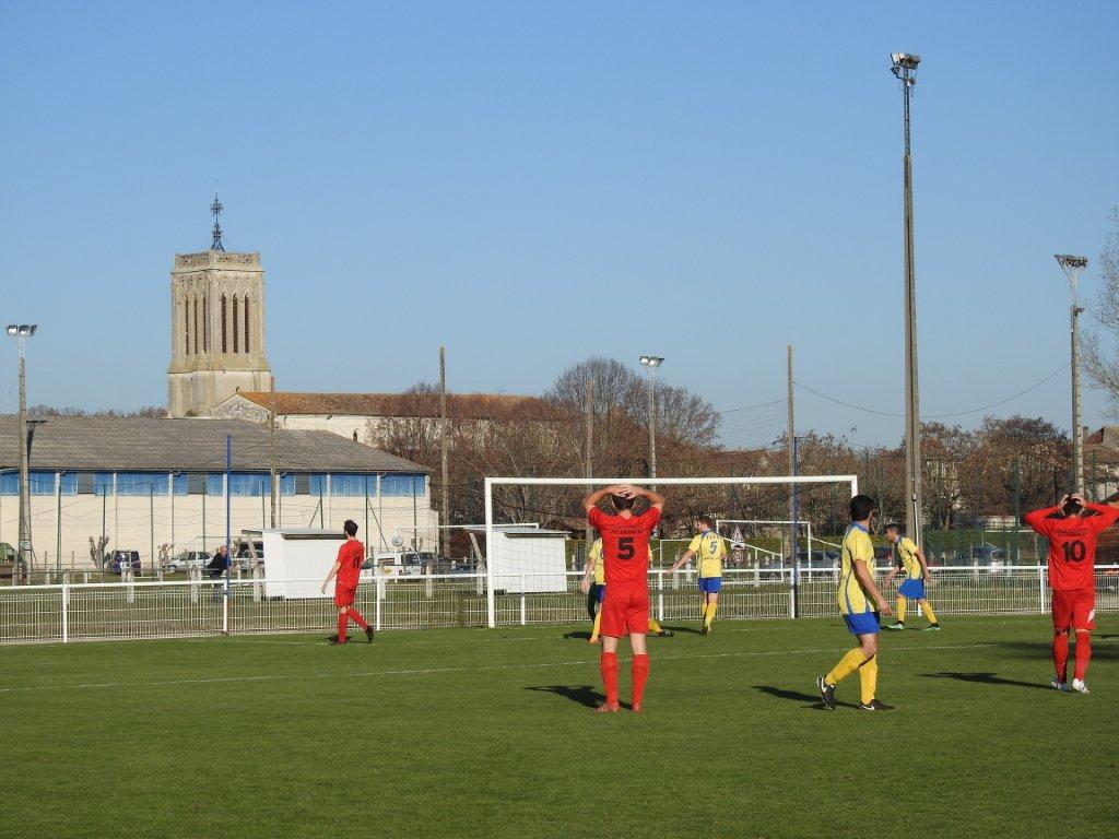 Les hommes de Patrice Vincent ne ratent pas leur entame et dominent des Girondins qui ont décidé d’attendre les Lot-et-Garonnais. C’est le très remuant Laborde qui allume les premières mèches mais son lob vient mourir au ras du poteau (8e), il expédie ensuite une frappe puissante dans le petit filet (14e). Bassens répond par une frappe à l’entrée de la surface, sortie en corner par Delalot. Malgré leur domination, les « Rouges et blancs » butent sur une défense bien organisée et hormis des frappes de Vincent (28e) et Combaud (40e), Bassens ne tremble pas.
