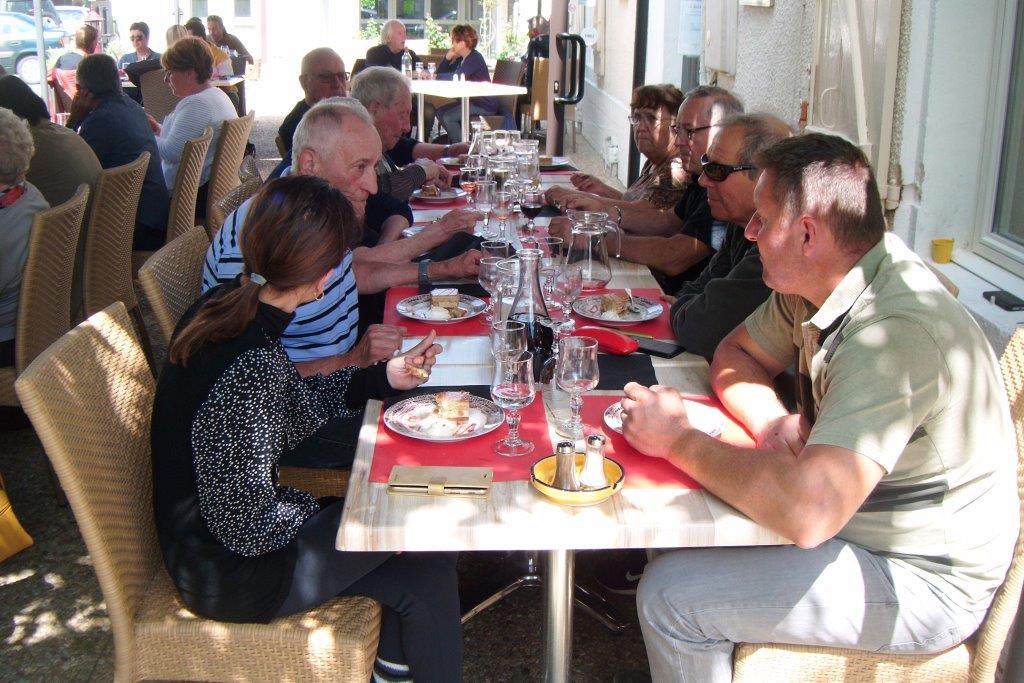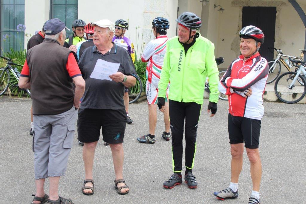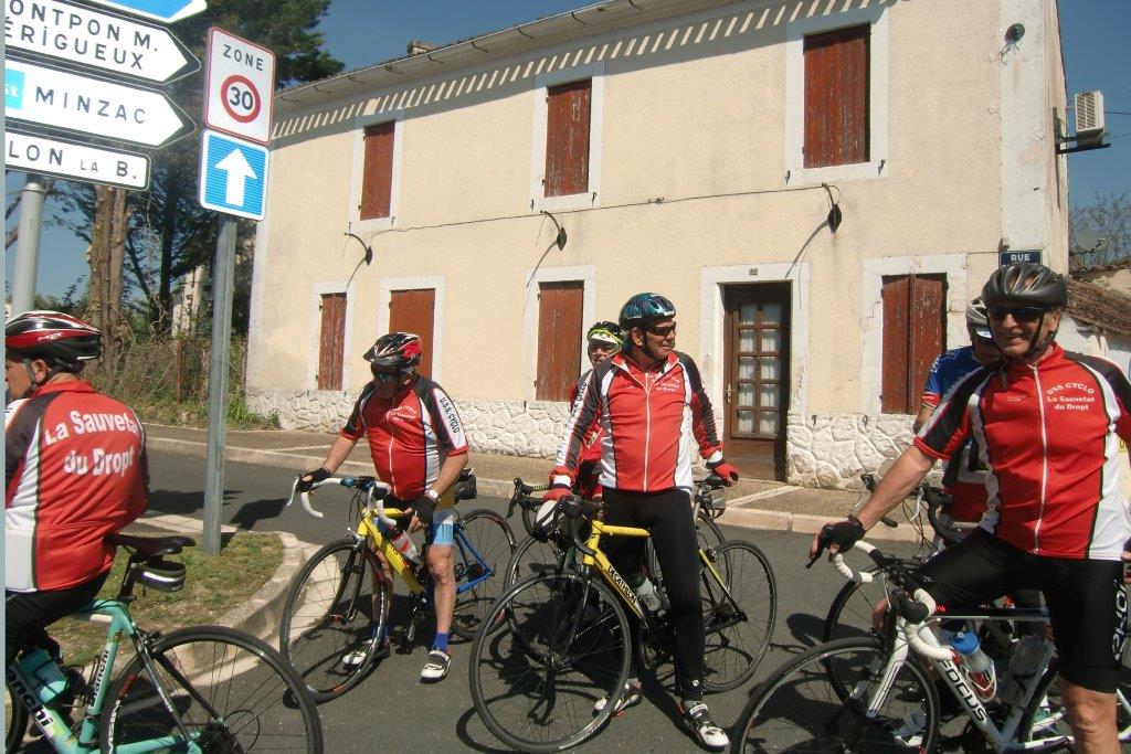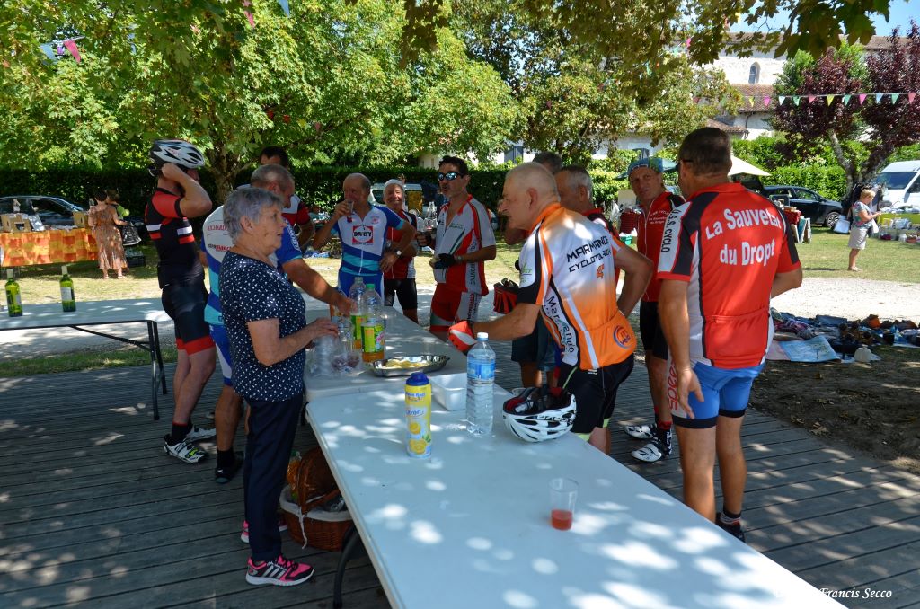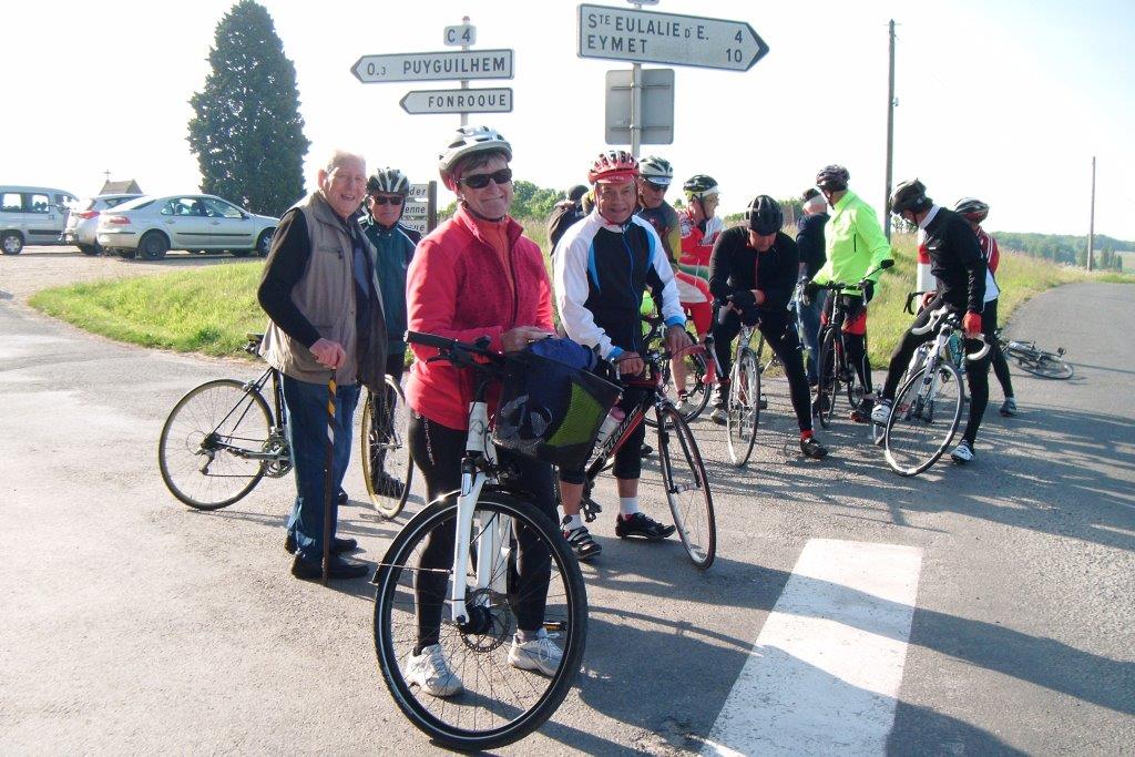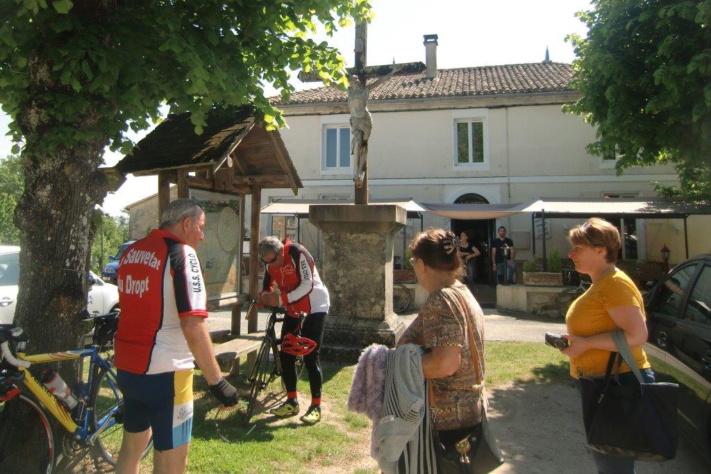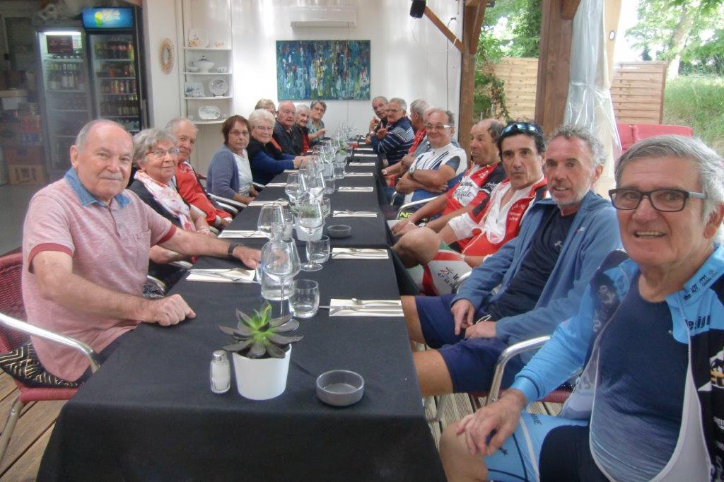 Nous voici réunis devant la Maison des Loisirs à La Sauvetat du Dropt, prêts à découvrir le parcours aller, soigneusement étudié par Alain, pour nous rendre à St Méard de Gurçon. Pas d’exceptionnelles surprises sur ces trajets environnants une fois le village quitté, nous les empruntons régulièrement au cours de nos entraînements hebdomadaires. Par contre, véritable régal de se retrouver entourés par les anciens qui n’avaient pas hésité à nous rejoindre avec compagnes et amis pour un succulent repas servi à midi à « L’Auberge de Jolibois ».