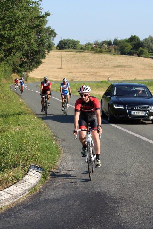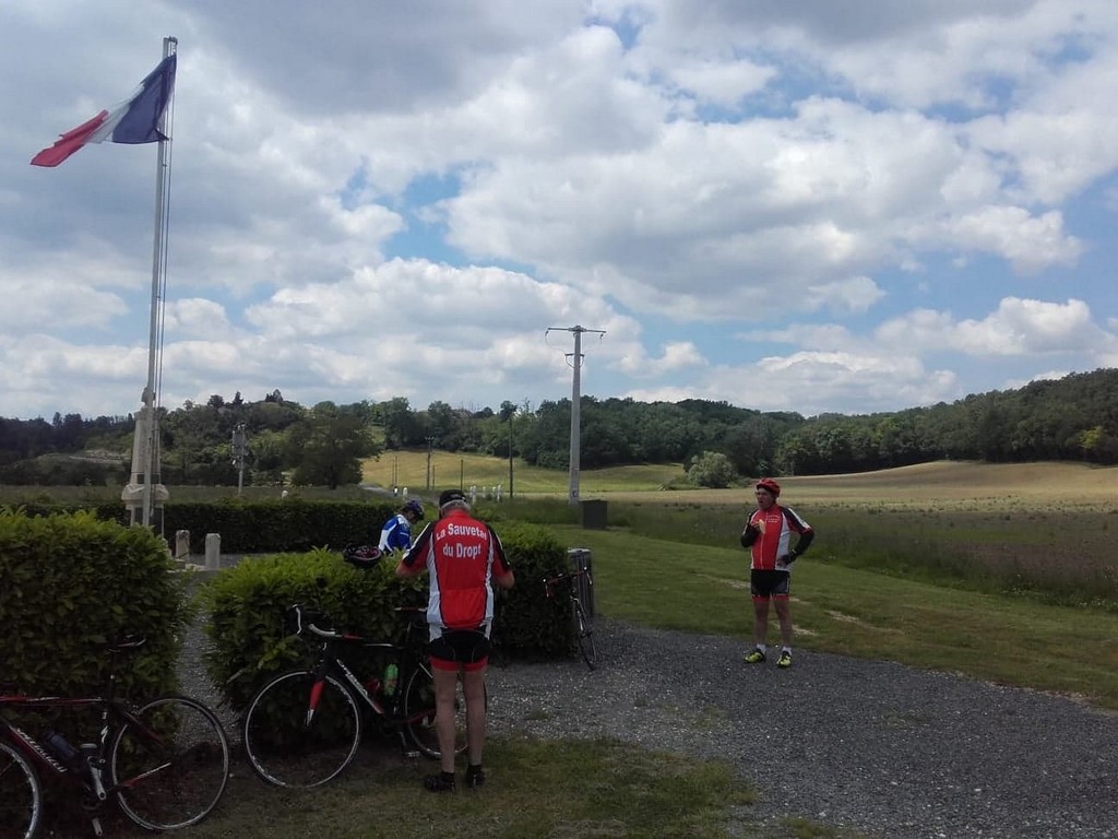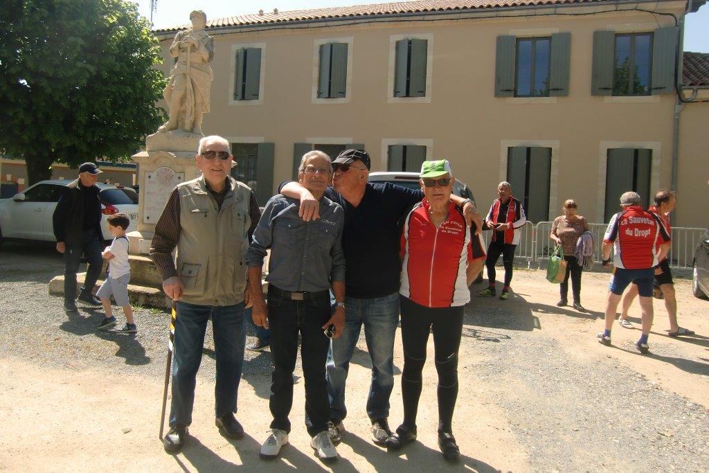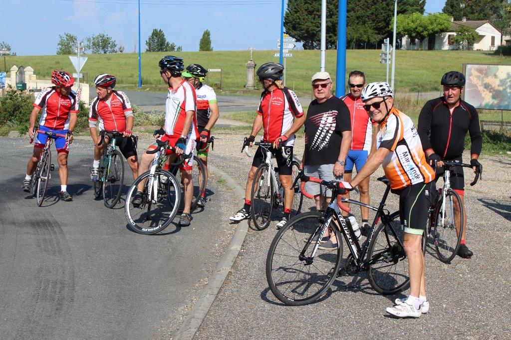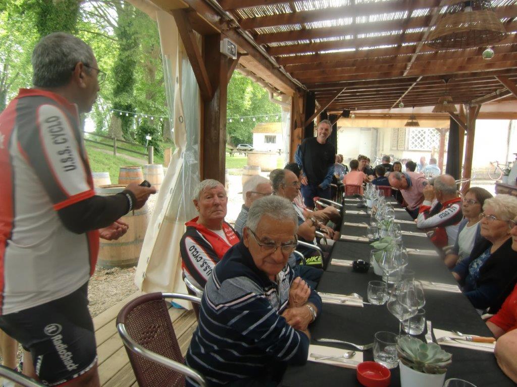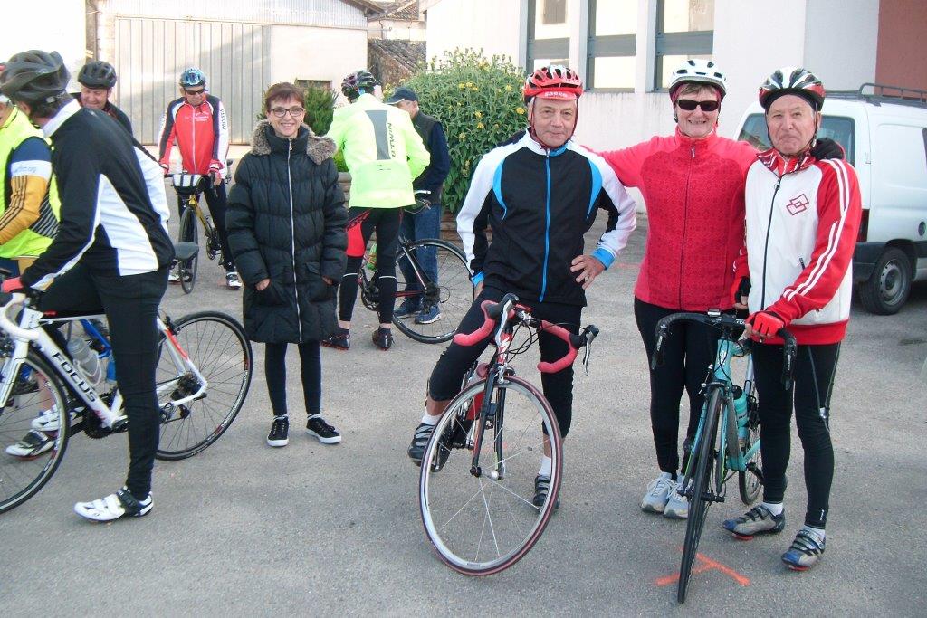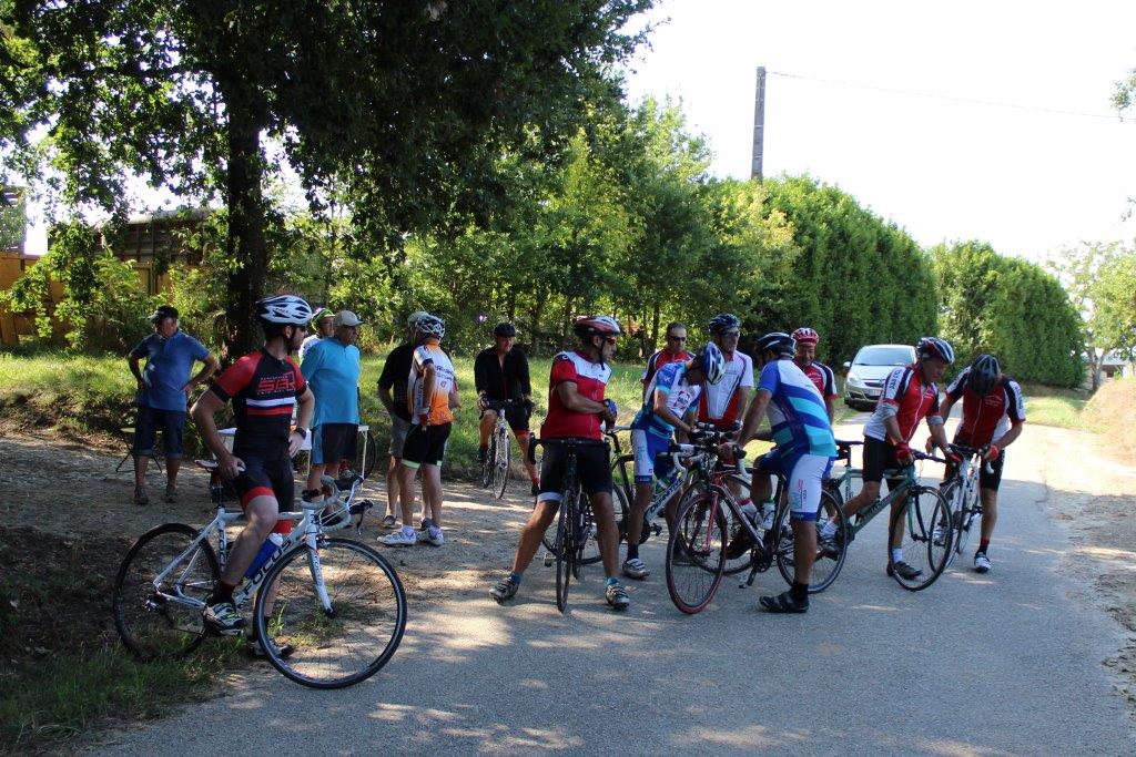 Nous voici réunis devant la Maison des Loisirs à La Sauvetat du Dropt, prêts à découvrir le parcours aller, soigneusement étudié par Alain, pour nous rendre à St Méard de Gurçon. Pas d’exceptionnelles surprises sur ces trajets environnants une fois le village quitté, nous les empruntons régulièrement au cours de nos entraînements hebdomadaires. Par contre, véritable régal de se retrouver entourés par les anciens qui n’avaient pas hésité à nous rejoindre avec compagnes et amis pour un succulent repas servi à midi à « L’Auberge de Jolibois ».