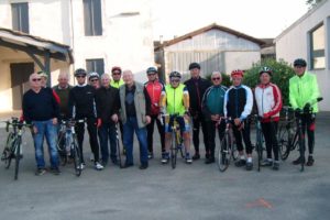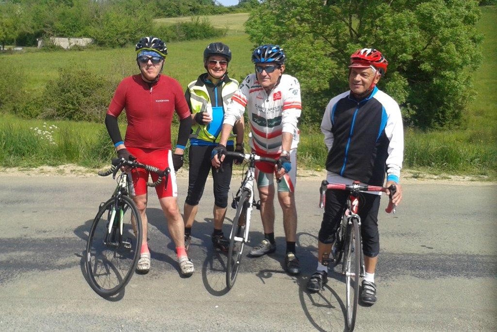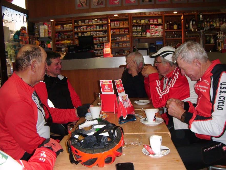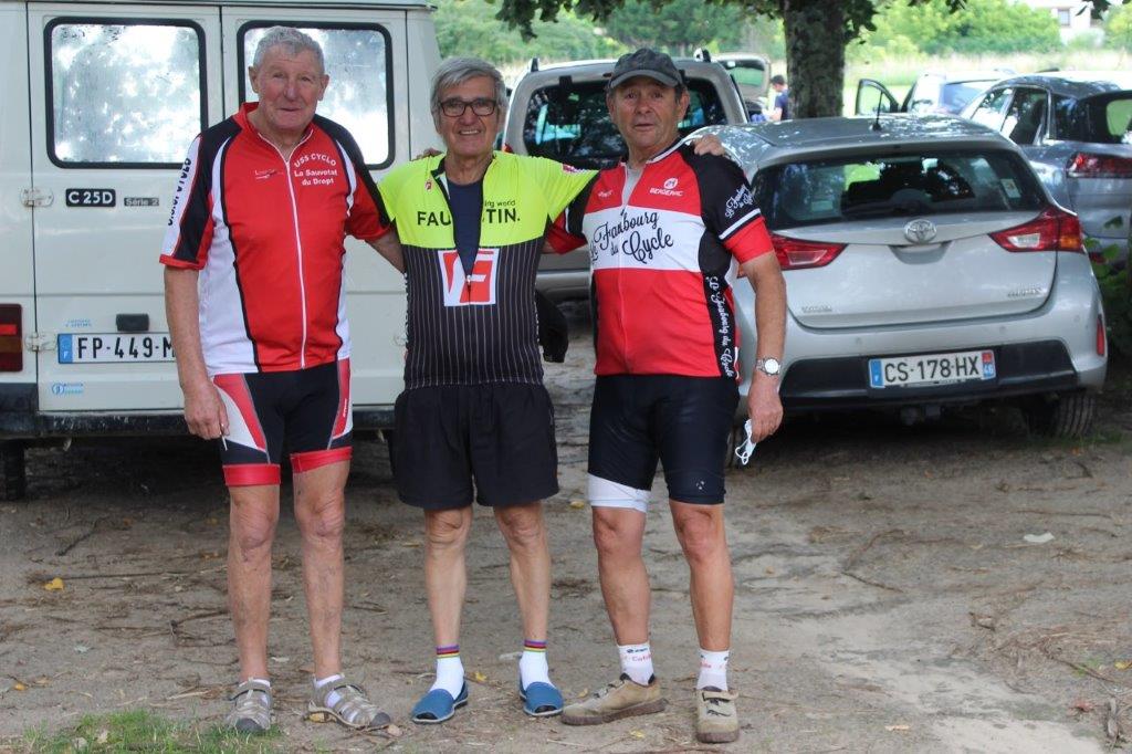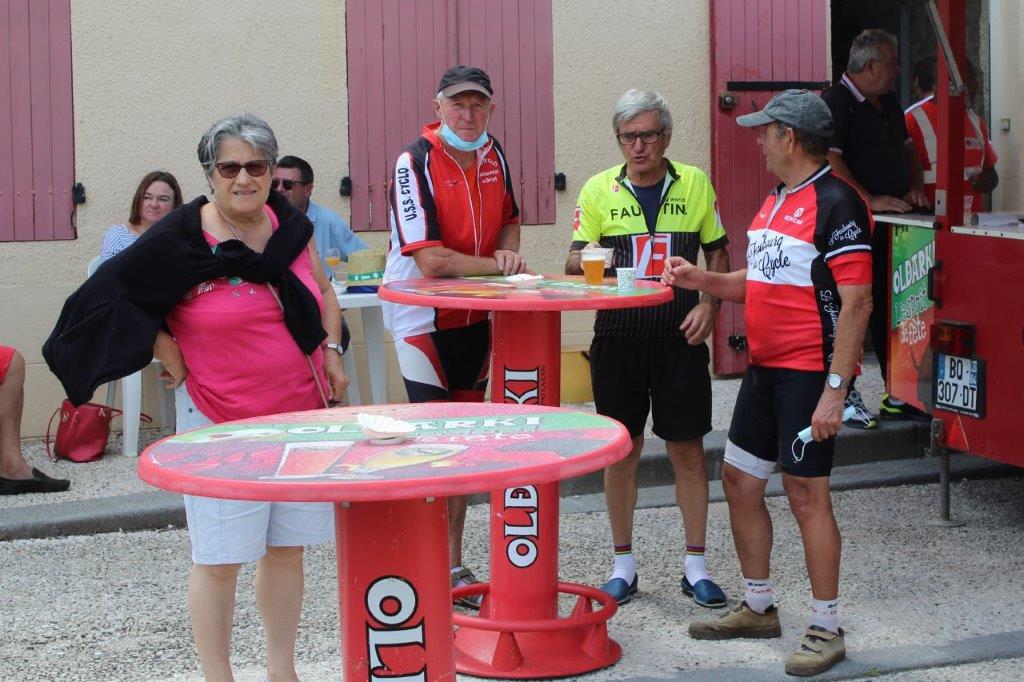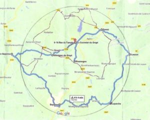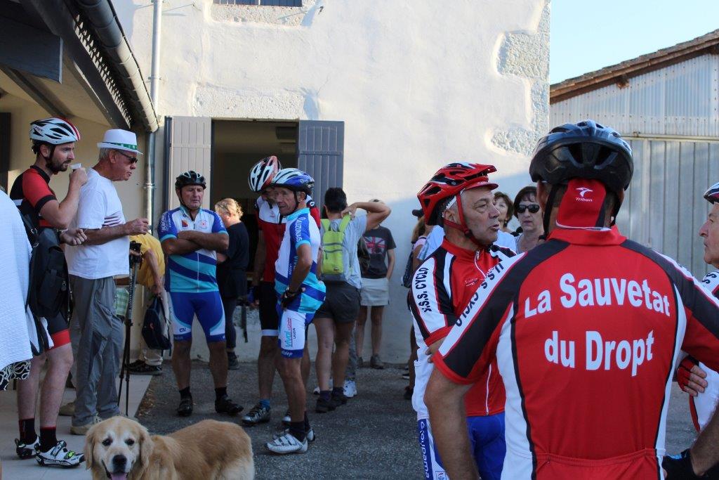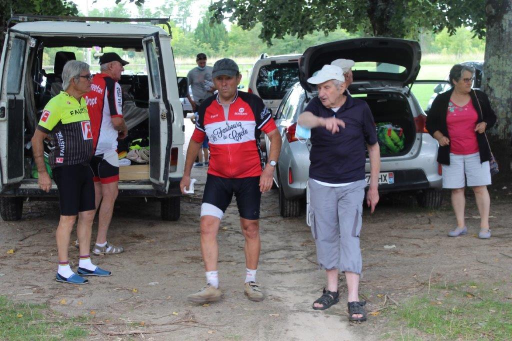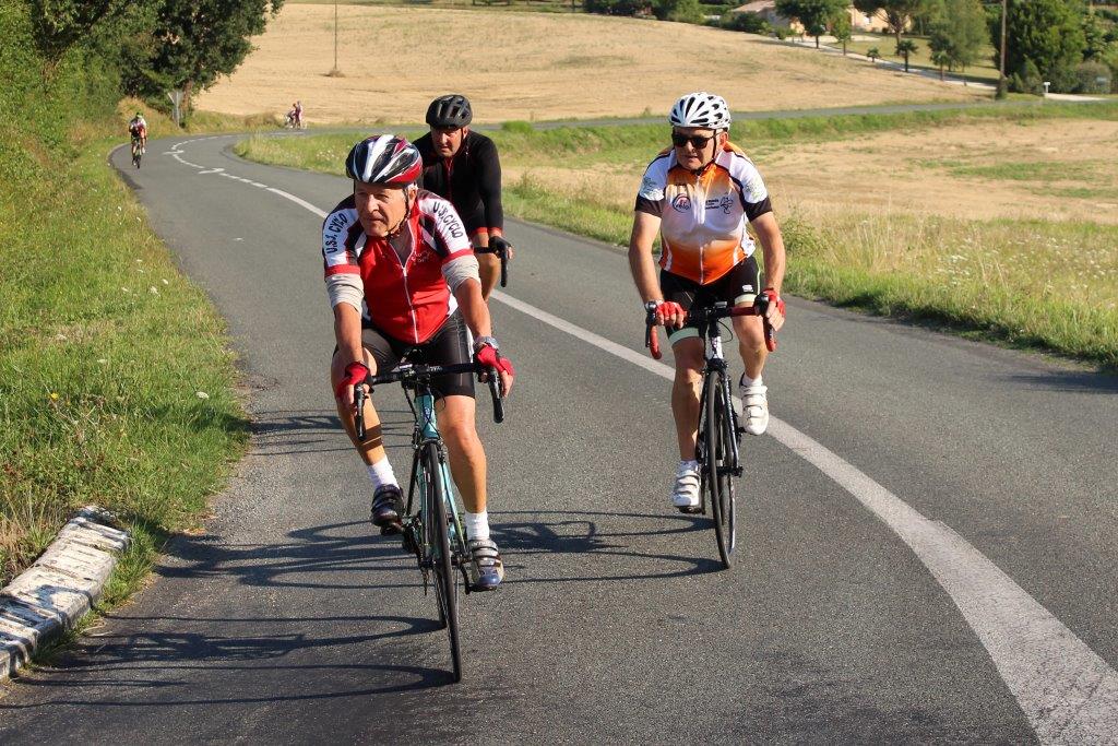 Nous voici réunis devant la Maison des Loisirs à La Sauvetat du Dropt, prêts à découvrir le parcours aller, soigneusement étudié par Alain, pour nous rendre à St Méard de Gurçon. Pas d’exceptionnelles surprises sur ces trajets environnants une fois le village quitté, nous les empruntons régulièrement au cours de nos entraînements hebdomadaires. Par contre, véritable régal de se retrouver entourés par les anciens qui n’avaient pas hésité à nous rejoindre avec compagnes et amis pour un succulent repas servi à midi à « L’Auberge de Jolibois ».