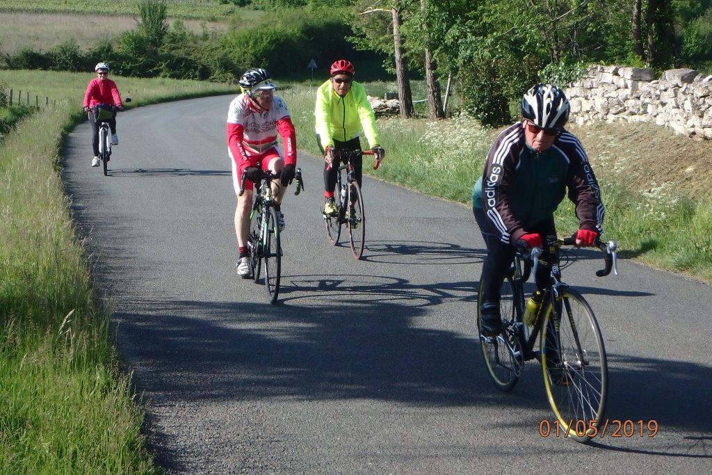Samedi, journée vélo, objectif 110 kms. Afin de préparer le challenge dans les meilleures dispositions Régine exerce ses talents de masseuse, et après la photo du départ, nous voici partis pour escalader le col de la Bataille, là où nos compagnes nous ont rejoint. Nous prenons le temps d’admirer le magnifique panorama autour de nous dans cet arrière pays méditerranéen.
