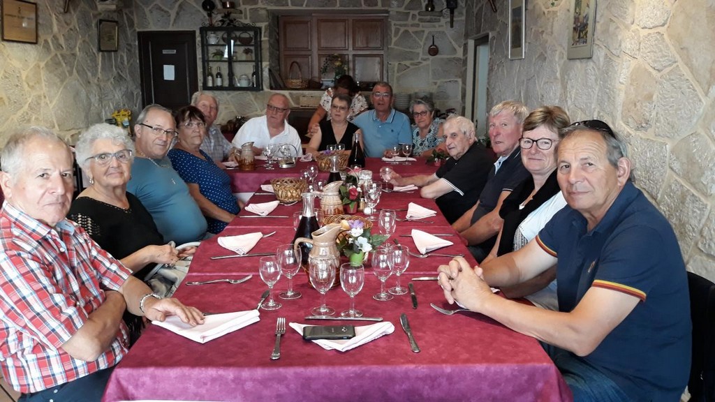 Mais d’abord, les choses sérieuses, où va-t-on manger à midi? Par bonheur, Alain qui connaît parfaitement la région, nous amène dans un petit resto sympa où nous pouvons nous « concentrer » avant de rejoindre le centre de vacances et nous parer de la tenue cycliste aux couleurs de LA SAUVETAT.