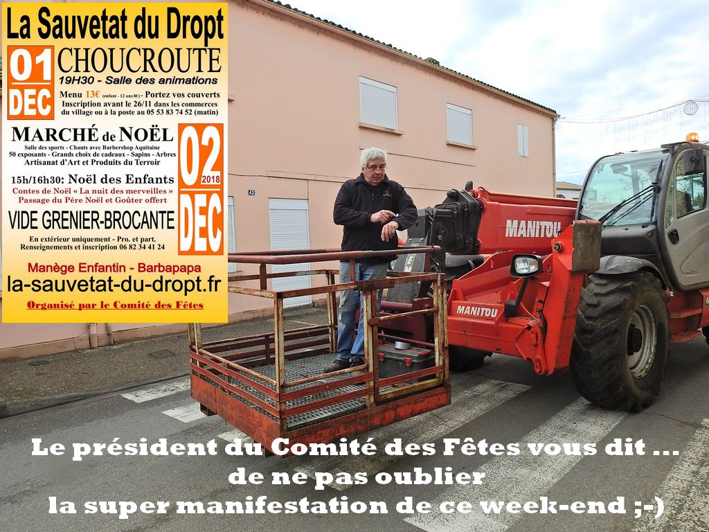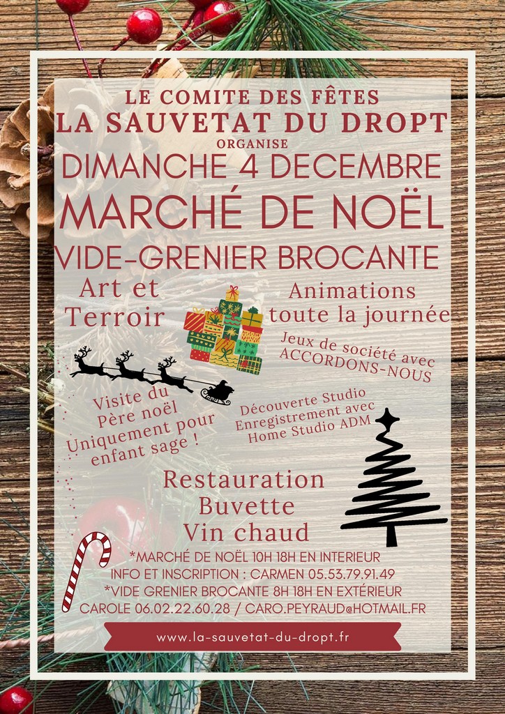 Le Comité des Fêtes et son président Peter Cain, secondé par Jacques Foglia et son association des Amis de la Sauveté, ont enclenché le compte à rebours puisque les Marché de Noël, Vide-greniers, Brocante auront lieu le dimanche 4 décembre avec un large choix de produits du terroir et de nombreux stands de créateurs.