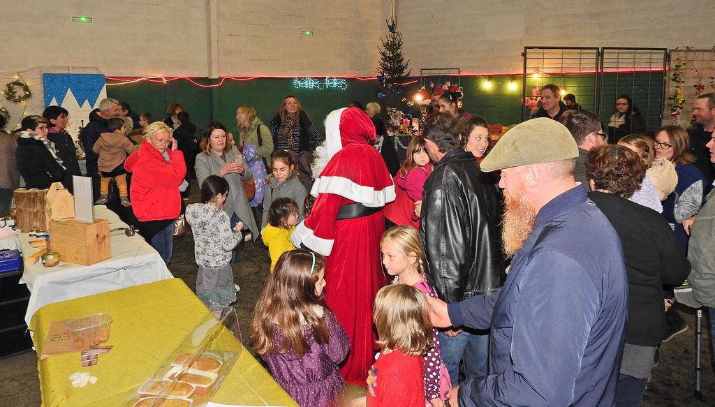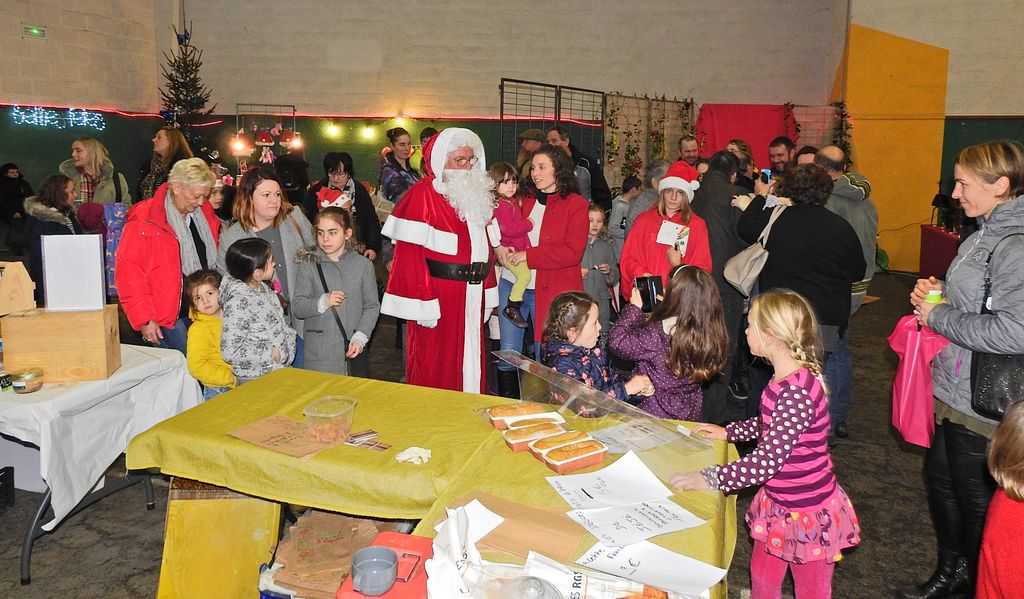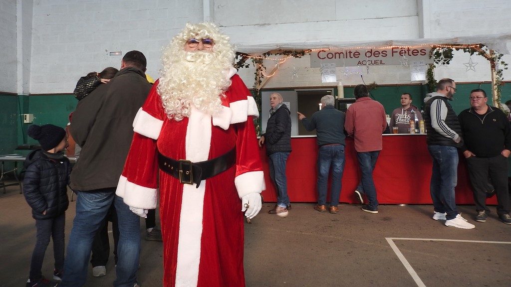 N’oublions pas le gentil Père-Noël venu faire un tour en matinée puis en milieu d’après-midi. Toujours aussi impressionnant auprès des tout jeunes enfants malgré sa belle et douce barbe blanche. Une timidité vite oubliée devant le panier de chocolats présenté à la cantonade puis lors du goûter offert par l’association.