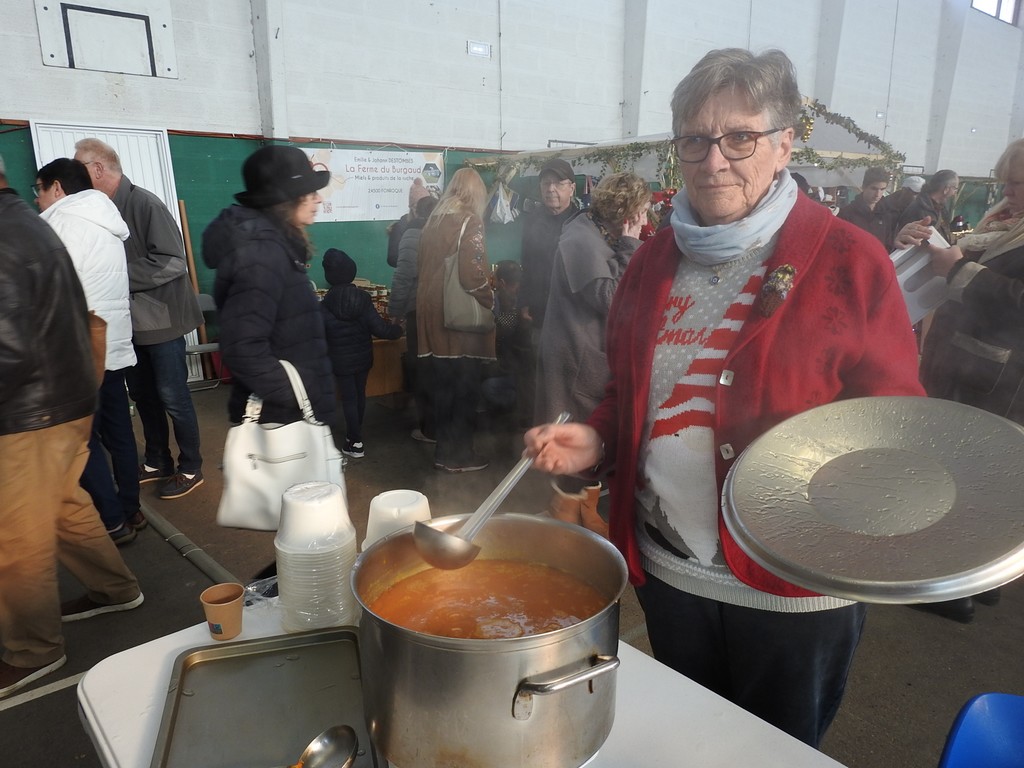 Malgré tout, les bénévoles de l’association ont œuvré dans la joie et la bonne humeur pour préparer et servir les repas de midi accompagnés d’un bon vin chaud pour se réchauffer.