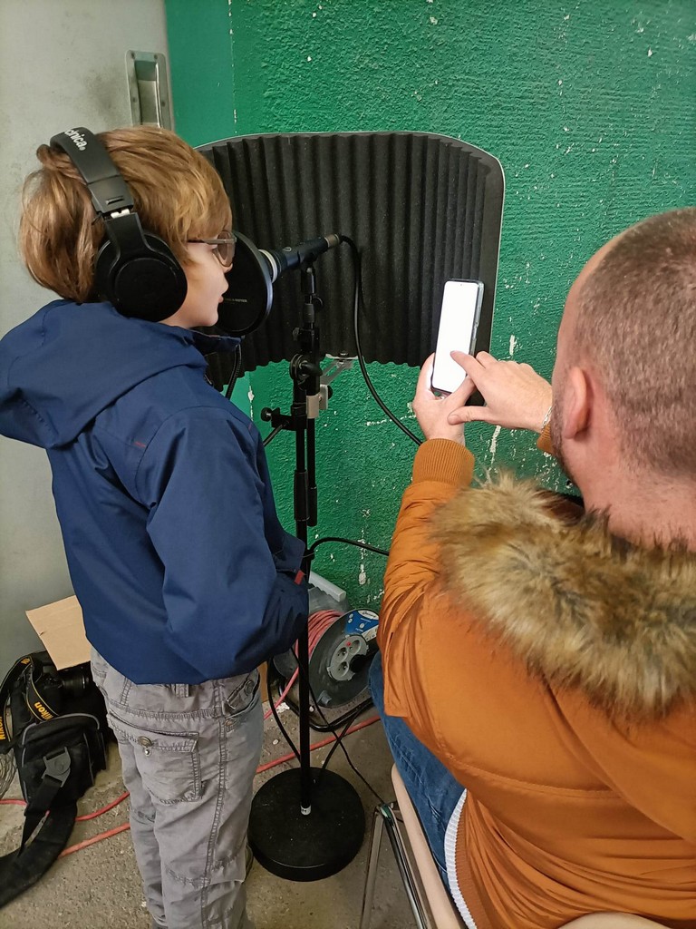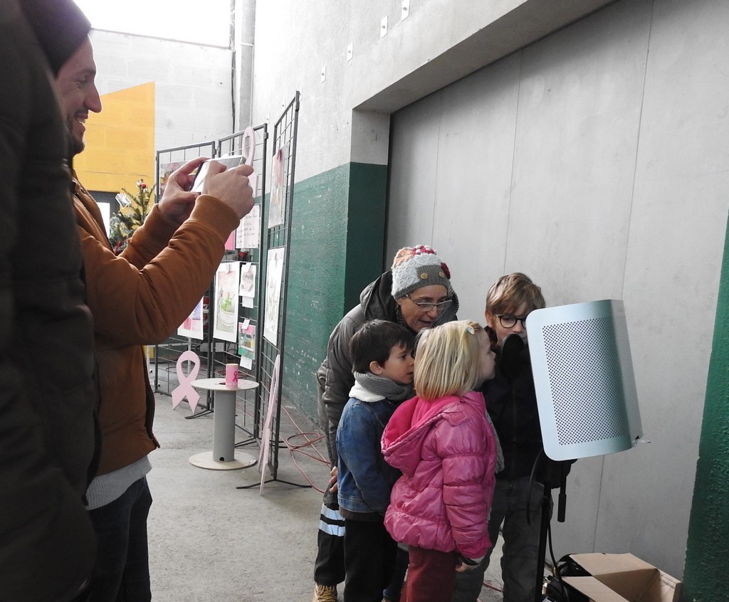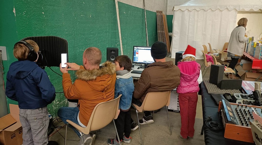 La seconde animation était proposé par Aurélien, employé municipal de la commune, et son frère Damien, membres du groupe Les As du Mic dont le Home Studio ADM est depuis peu sauvetatois. Venus vendre les derniers tableaux peints le jour d’Octobre Rose pour augmenter la cagnotte reversée à la recherche contre le cancer, ils proposaient aux enfants de chanter un morceau pour l’enregistrer puis réalisaient un mixage en mettant un fond sonore et en multipliant les pistes pour avoir un rendu de presque pro. Un exercice qui a beaucoup plu, notamment à Maxendre, jeune musicien en herbe qui risque désormais de fréquenter le studio …