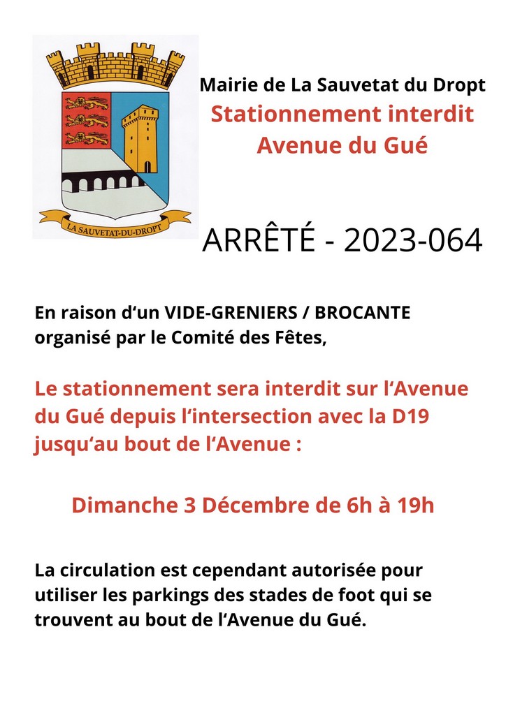 • Info Mairie : Arrêté de stationnement Avenue du Gué