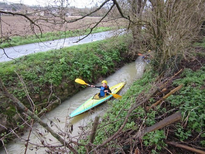 Il pleut beaucoup ces derniers temps ce qui explique la montée des eaux du petit cours d’eau de La Braguèze qui sépare les communes d’Agnac et de La Sauvetat du Dropt. Si certains s’en plaignent, d’autres ont eu l’idée d’en jouer. Ce fut le cas de Yves Baudé, entraîneur au Canoë Kayak Club de la Vallée du Dropt, qui a profité de l’aubaine pour l’entraînement des jeunes du CKC ce mercredi après-midi 11 février.