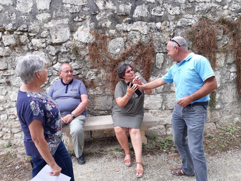 L’arrêt pique-nique fut suivi d’une visite commentée par Francine Pandolfo, présidente des Amis de la Sauveté. Le petit groupe, composé de touristes mais aussi de locaux des communes voisines, aura découvert le patrimoine du village: le pont roman (appartenant pour moitié à la commune d’Agnac), les maisons à pan de bois, les vestiges du mur d’enceinte, l’église, la Maison de la Tour et Monviel ou encore la maison renaissance. Monsieur Murer, Maire de la commune d’Agnac, prit part à la visite en donnant des précisions sur les travaux de restauration effectués et ceux à venir du pont roman.