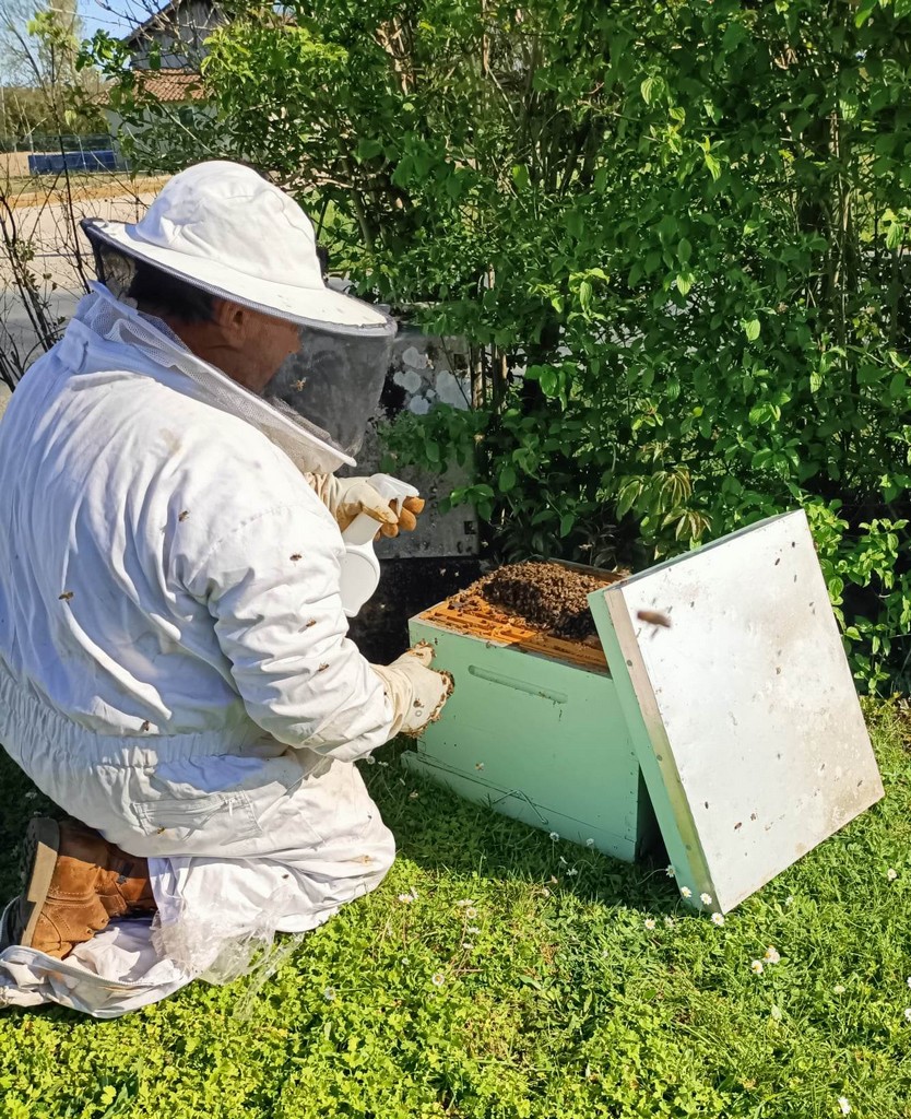 Revenu vers 21h, il constatait que toutes les abeilles étaient dans la ruche. Maintenant logée entre vergers de fruitiers et vignes, il faut attendre quelques jours encore pour savoir si ce nouvel habitat plaira à la reine et sa population. Quoiqu’il en soit, Jean-Marc et Marie-Lise auront le privilège de goûter au miel du Domaine de Laplace.