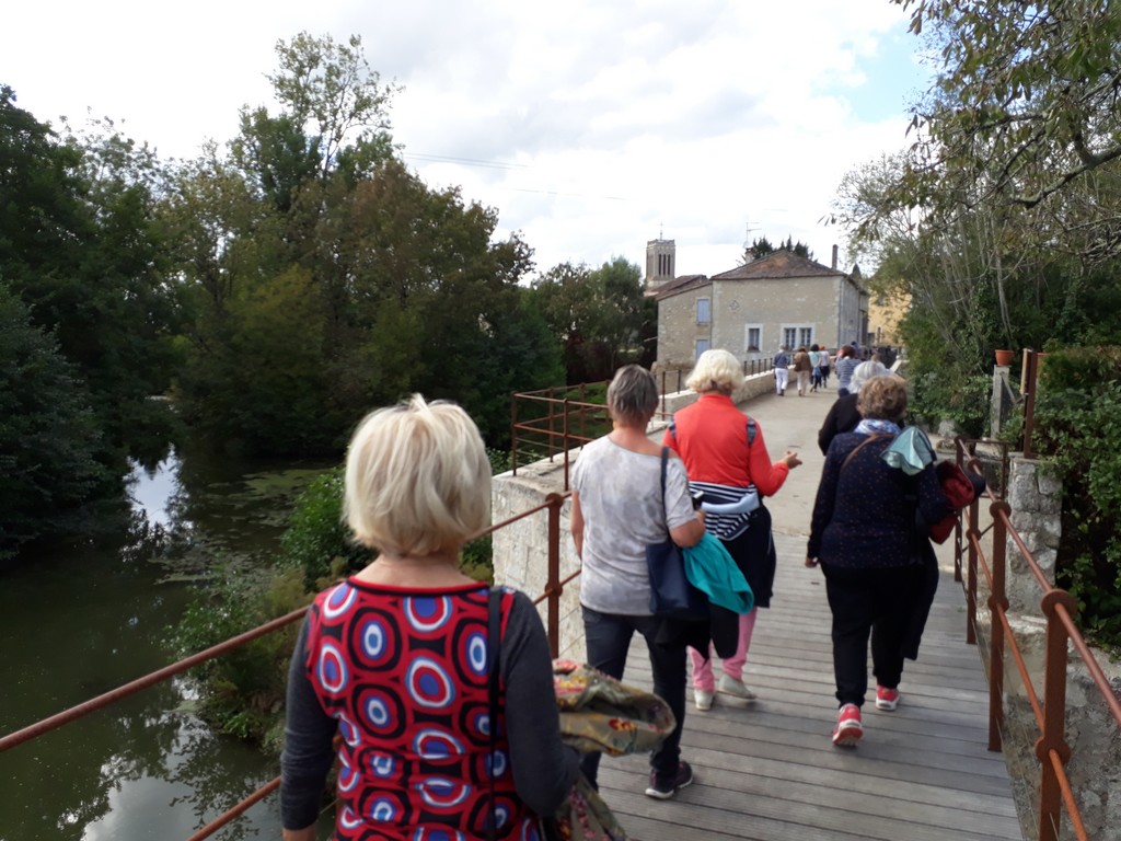 Jeudi 3 octobre, comme chaque semaine, ce groupe d’amis qui se sont rencontrés sur le site Amiez, ont choisi de visiter notre petit territoire. La matinée leur a permis de découvrir Allemans du Dropt et les fresques de son Église en compagnie de Françoise, Raconteur de Pays. Ces visiteurs sympathiques, venus du Lot-et-Garonne et de la Gironde, étaient attendus par Isabelle sur la Place du Moulin à La Sauvetat du Dropt pour faire le tour du village dans l’après-midi. Malgré les travaux et grâce au concours de Roger, propriétaire du moulin, ils furent autorisés à traverser le Pont Roman pour admirer l’ouvrage dans son ensemble.