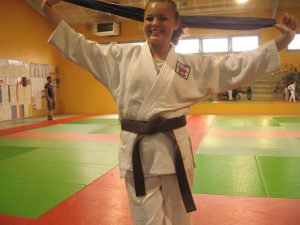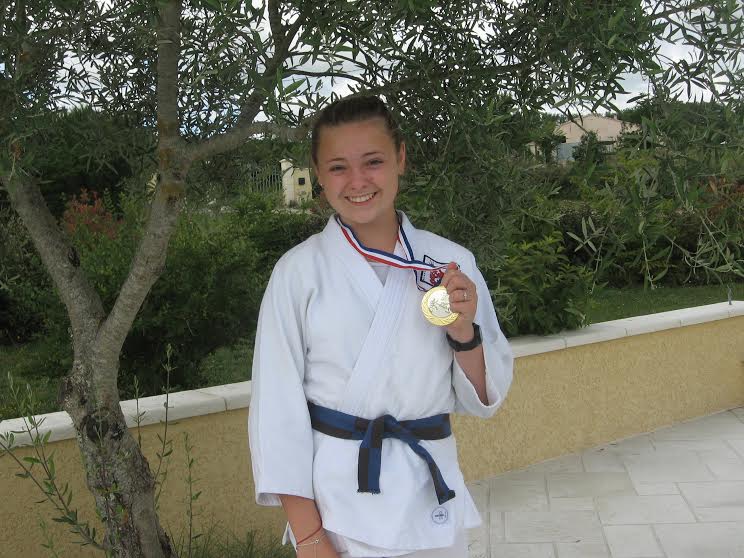 La jeune Sauvetatoise JUDITH CORAIN a commencé le karaté au karaté club Miramontais en 2009 à l’âge de 7 ans. Elle vient d’avoir la ceinture marron à l’âge de 14 ans et brandit fièrement la médaille d’or du Championnat Départemental qui avait lieu à Agen en mai 2016. Félicitations Judith.