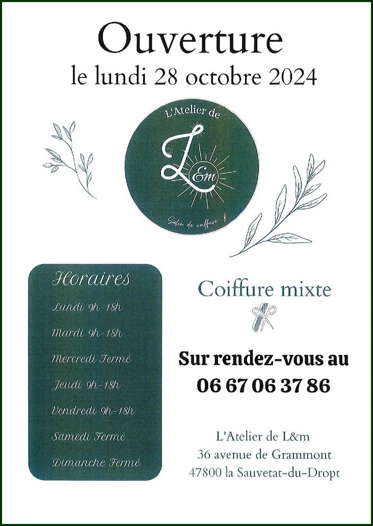 C’est avec un grand plaisir que la Municipalité annonce la réouverture de L&m Salon de Coiffure depuis lundi 28 octobre.