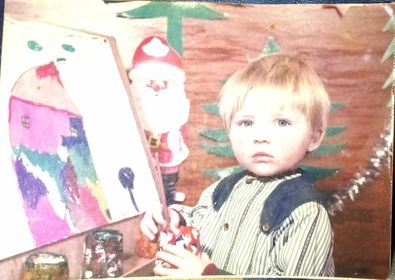 Olivier Bondois, sauvetatois, fuit la civilisation bien qu’il vive en plein cœur du village et passe de longues heures à peindre depuis qu’il est très jeune comme sur cette photo où il n’a que 4 ans.
