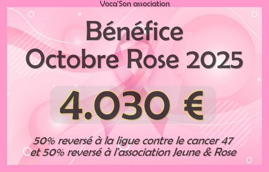 C’est avec une immense joie et autant de fierté que nous vous annonçons un bénéfice de 4 030 euros pour cette édition octobre rose 2025 Un bénéfice record, bravo !