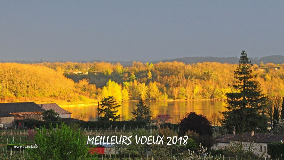 Marie Coutable, par le biais du Club Objectif Duras, envoie ses vœux pour la nouvelle année depuis son chalet situé à Soumensac avec vue sur ce magnifique Lac de l’Escourou.